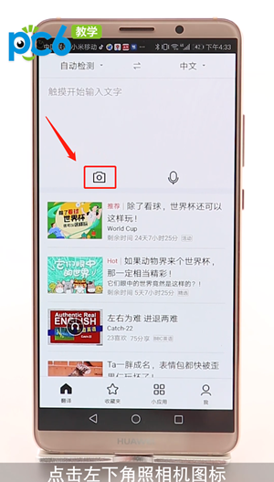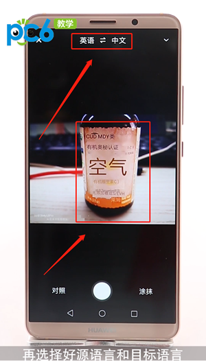 5.当然,还有翻译图片功能。点击左下角【照相机】图标,可以直接拍照或在左下角进入图库选择一张照片,打开后点击右上角【对勾】,再选择好【源语言】和【目标语言】