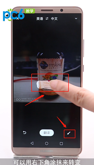 6.此时,图中的整段英文就变成汉字从而呈入眼帘了,若是没有译到想要的位置,可以用右下角【涂抹】来转变。
