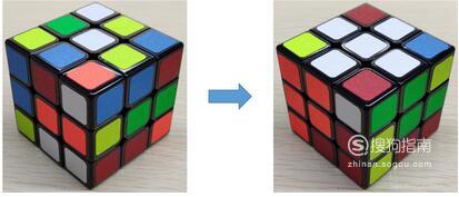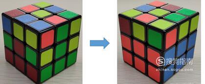 这一步的思想就是,先看顶面颜色(也就是顶面中心块的颜色),然后在顶层四个棱块中找没有这个颜色的,如果找到了,那就把第三层的棱块转到相应颜色的面上,再看顶面上这个块是什么颜色。
