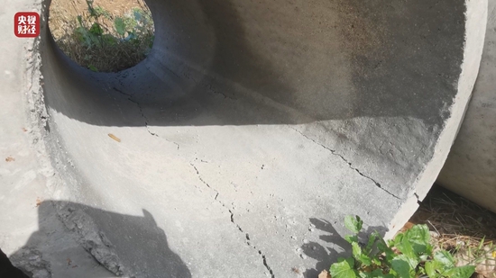 在蔡桥镇十四顷村的施工现场堆放着上百根水泥管,许多水泥管出现明显的裂缝,钢筋裸露。