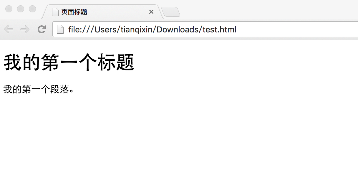 <!DOCTYPE html><html><head><meta charset="UTF-8"><title>页面标题</title></head><body> <h1>我的第一个标题</h1> <p>我的第一个段落。</p> </body></html>