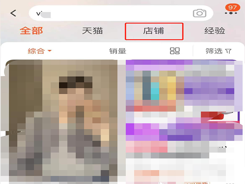 3、在搜索详情页面上,点击的“店铺”,进入店铺页面。