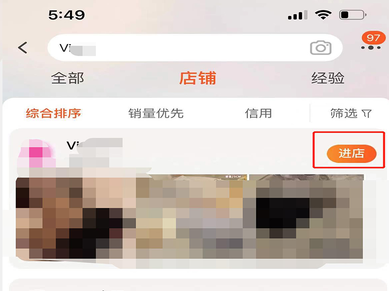 4、在店铺页面上,找到自己的店铺,点击“进店”,即可进入店铺详情页面。