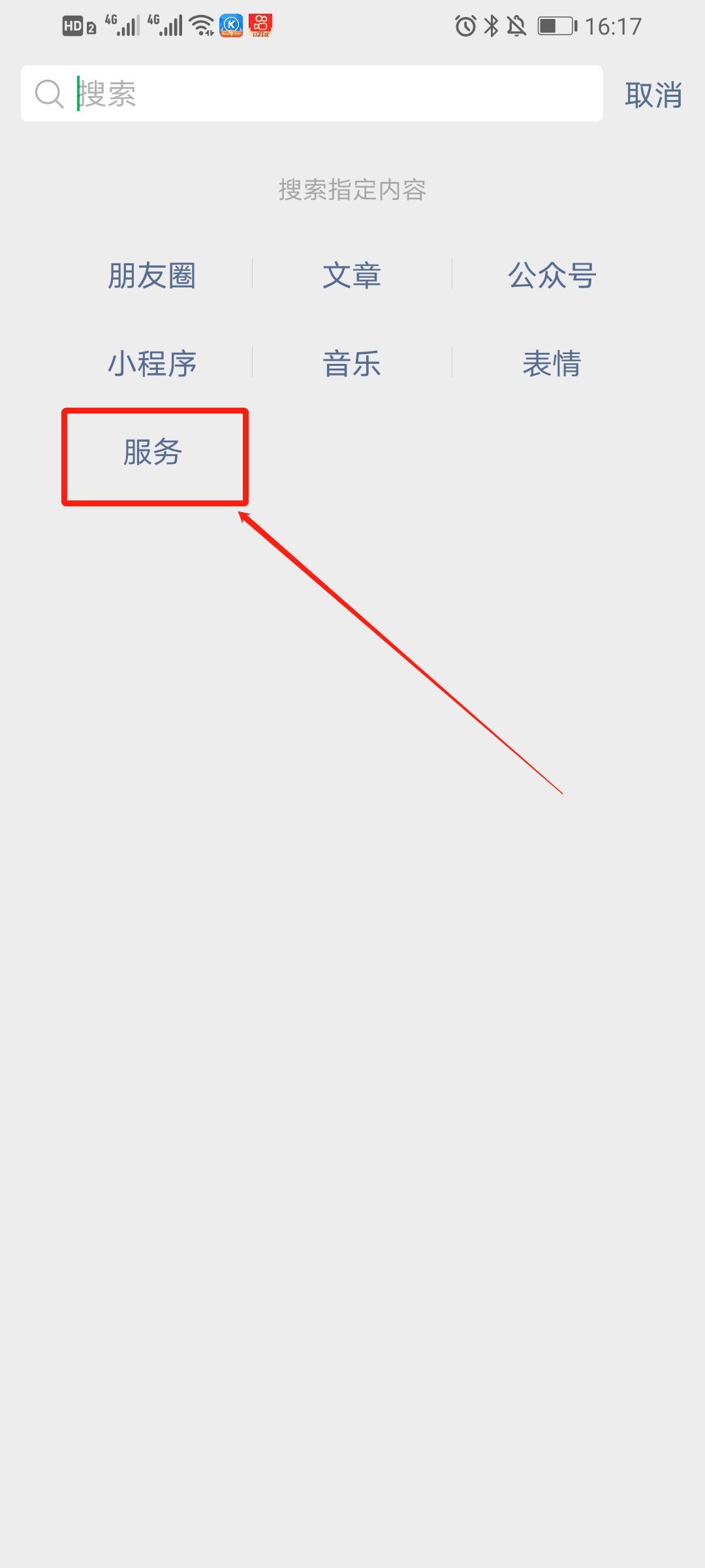 第二步:然后进入,点击页面下方的“服务”(如下图所示);