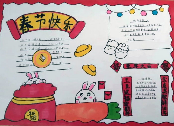 在民间人们还喜欢在窗户上贴上各种剪纸——窗花。窗花不仅烘托了喜庆的节日气氛,也集装饰性、欣赏性和实用性于一体。剪纸在我国是一种很普及的民间艺术,千百年来深受人们的喜爱,因它大多是贴在窗户上的,所以也被称其为“窗花”。窗花以其特有的概括和夸张手法将吉事祥物、美好愿望表现得淋漓尽致,将节日装点得红火富丽。