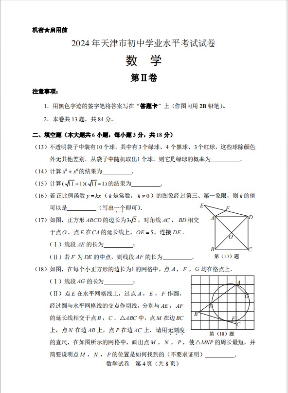 2024年天津中考数学真题图片版(含答案)相关文章: