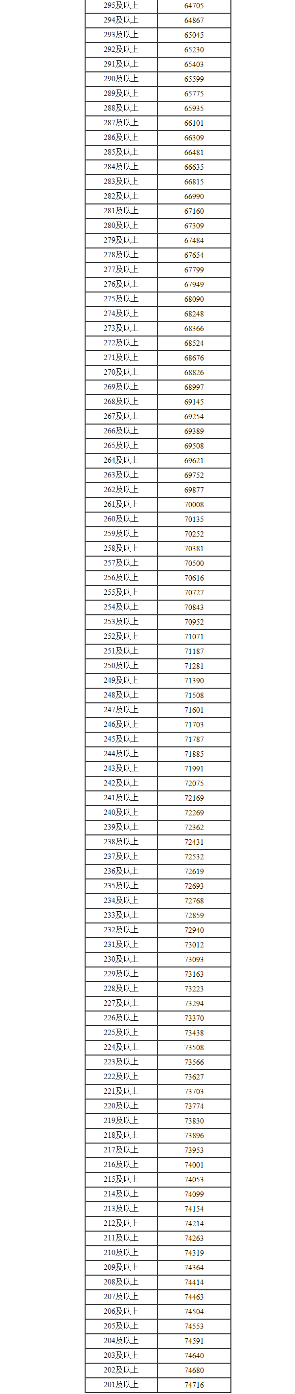 | 211及以上 | 70185 |