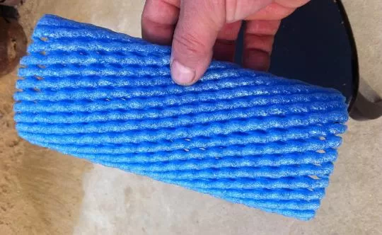 水果网套用是以保丽龙制成,含有聚乙烯,材料密度高,表面光滑、能够吸收水分,及清除污渍油垢。将它沾上上少许碗碟清洁剂,然后清洗碗盘筷子汤匙等,不但能清除油渍污垢,且也不会在碗盘汤匙上留下刮花痕迹。