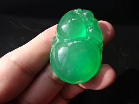 水最好的翡翠,稍远(在一米左右)望去,就像一个靓丽的玻璃体内装着一滴鲜艳的露珠,用手晃动翡翠件,俨然像露珠在里面滚动。
