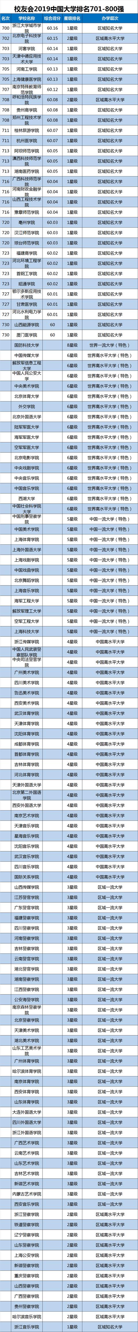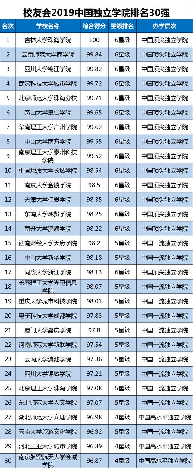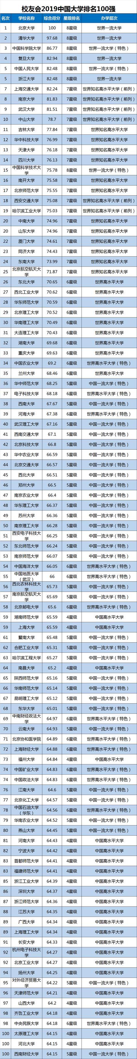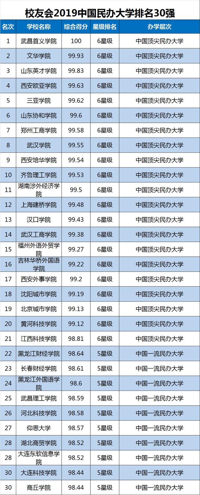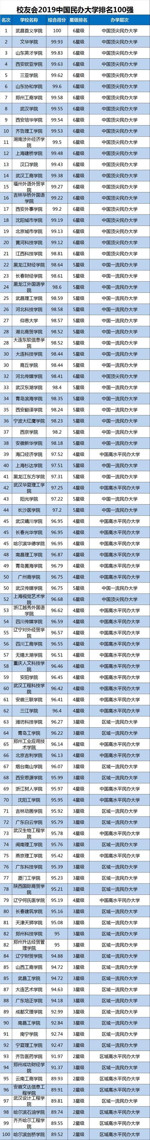 以下为校友会2019中国大学排名、2019中国民办大学排名和2019中国独立学院排名完整榜单: