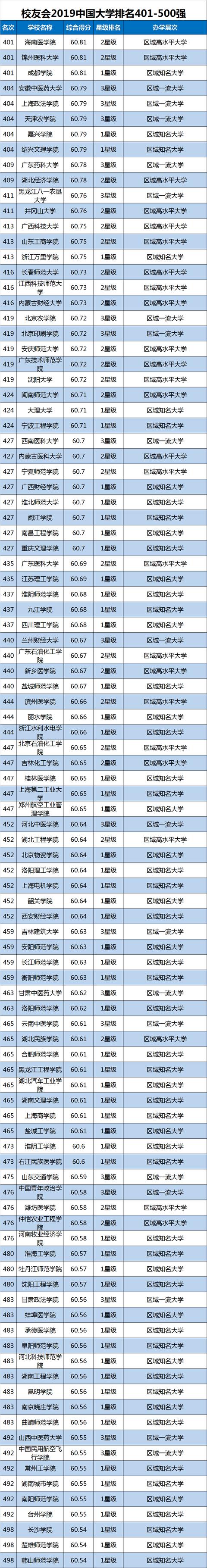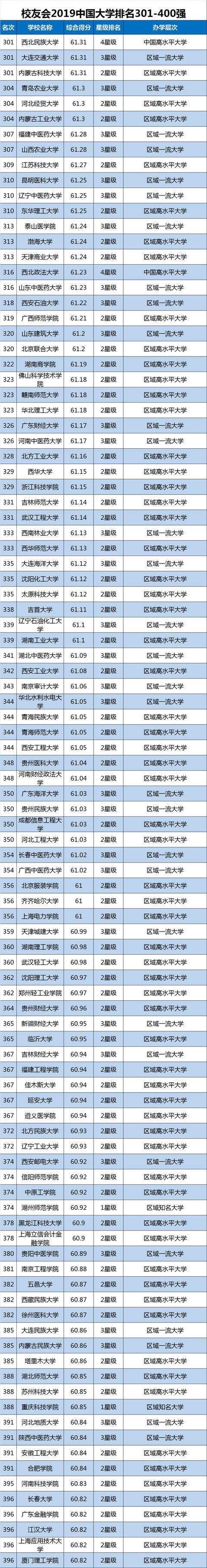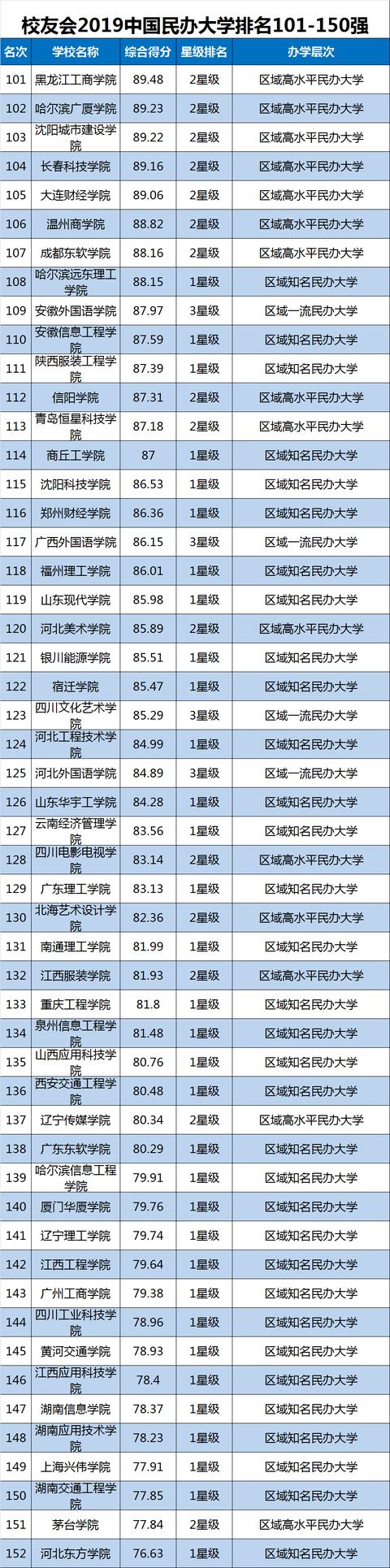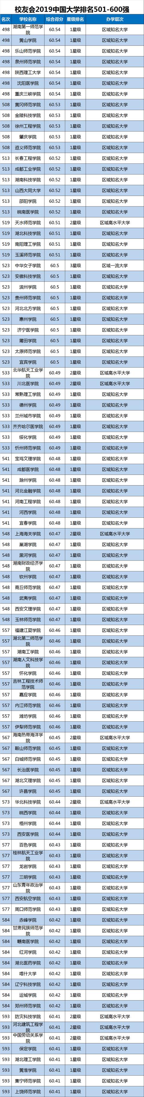 以下为校友会2019中国大学排名、2019中国民办大学排名和2019中国独立学院排名完整榜单: