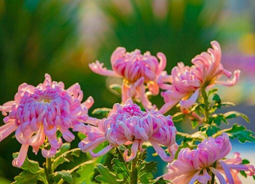 菊花的形状分5种类型,有桂瓣、匙瓣、畸瓣、平瓣和管瓣,就好像一个个鲜艳的绣球一样,菊花开出来的花也是非常好看的,有红色的、粉色的、白色的等,观赏性是非常高的。